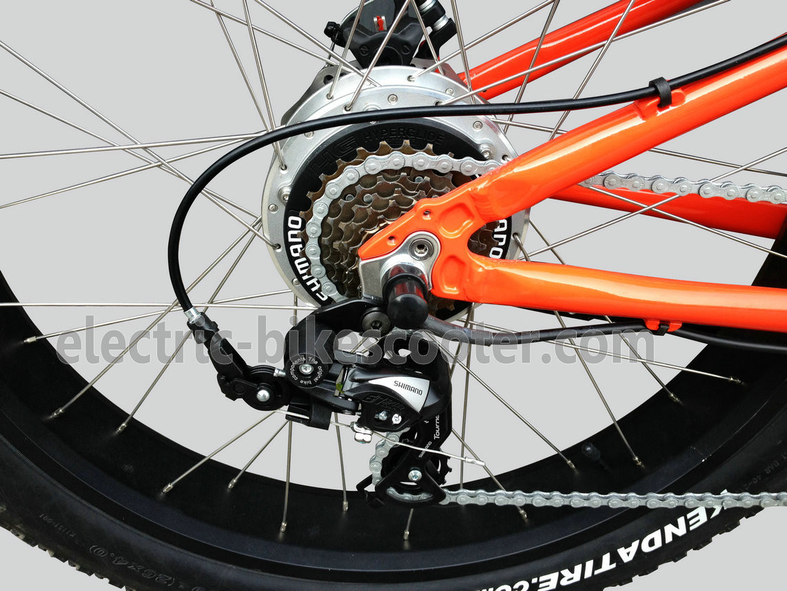 ZOOM disc brake, Shimano RD-TX55 derailleur, Kenda 26"x4.0 beach tire, KMC rust-proof chain, Velo mountain style saddle, BAFANG rear gear motor and quick released front hub, all this components make beach bike with the ultimate performance.
