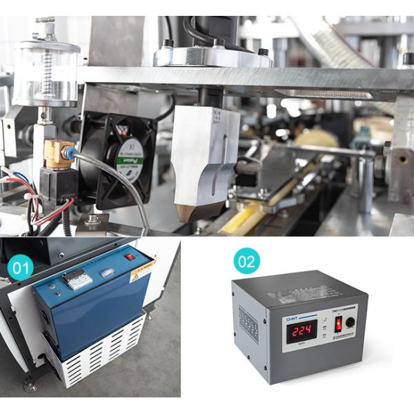 Ultrasonic heater suitable for sealing the Single PE 1 Doule PE paper ,Paper weight 140GSM-350GSM. Ultrasonic heater system is with ① electric control box and ② voltage regulator which is provided for free to protect the ultrasonic electric system