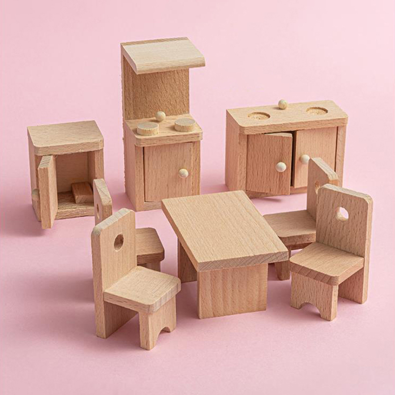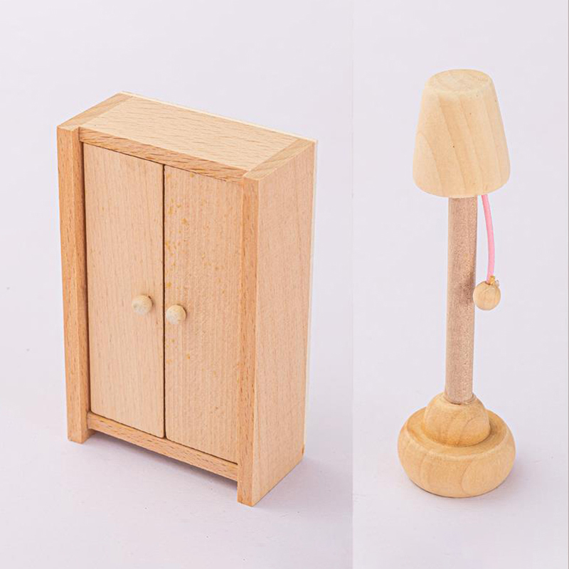 Wooden DollHouse Miniature Room Set Bedroom Bathroom Kitchen Dining Room Living Room Furniture ,For Kid Gift Education