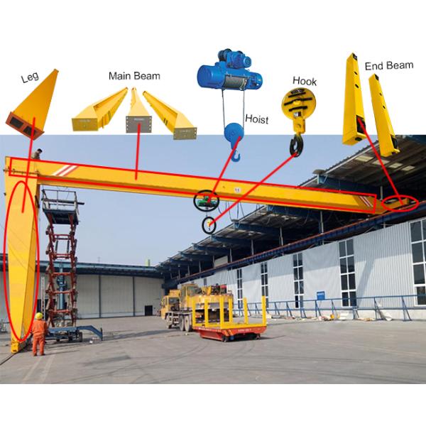 Semi gantry crane is used together with CD1 and MD1 model electric hoist. It is a track travelling small and medium sized crane. Semi Gantry Crane is widely used at opean ground and warehouse to load and unload materials.