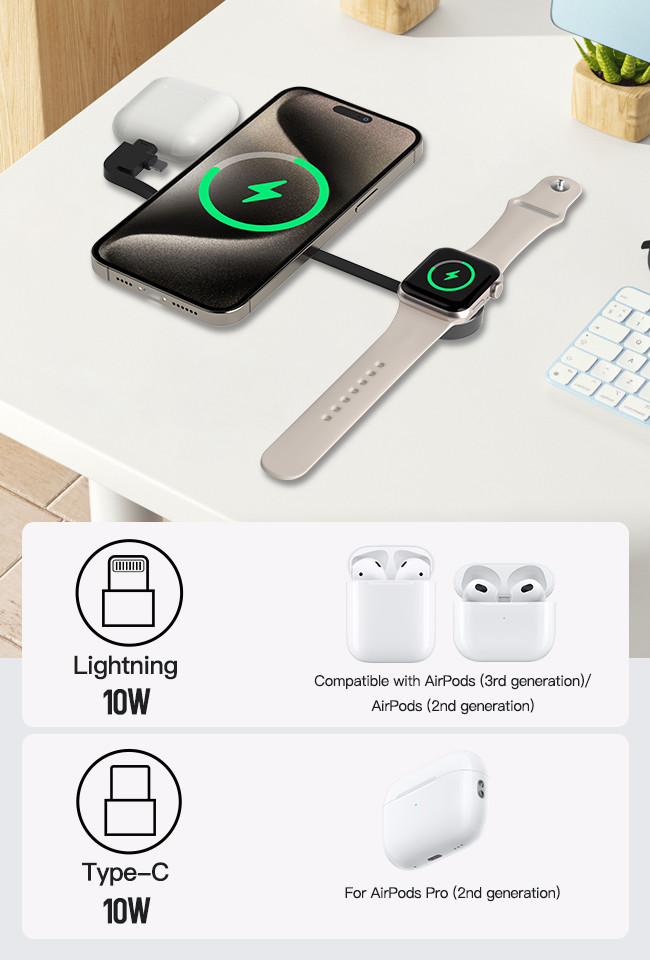 Portable 15w Wireless Charger For IPhone Watch And Headphones