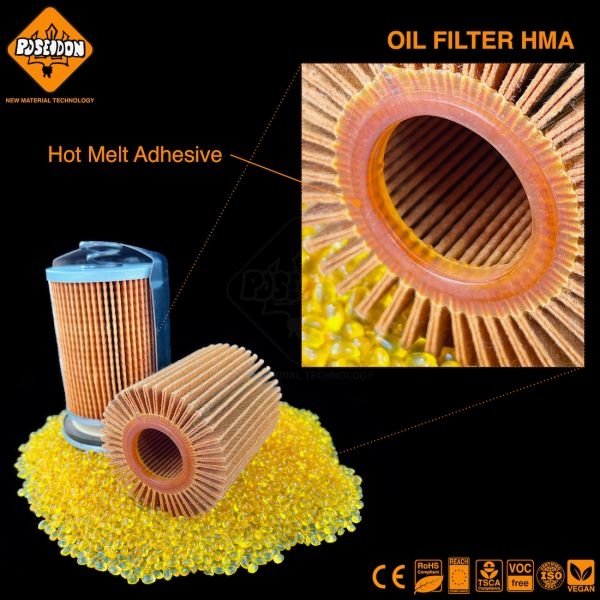 Tailored exclusively for filtration applications, Poseidon P7150 is a golden polyamide (PA) hot melt adhesive with a slight odor, designed to meet the rigorous demands of air, oil, and fuel filter production. It boasts excellent flexibility and thermal stability, paired with flame-retardant additives that enable consistent performance amid temperature changes.